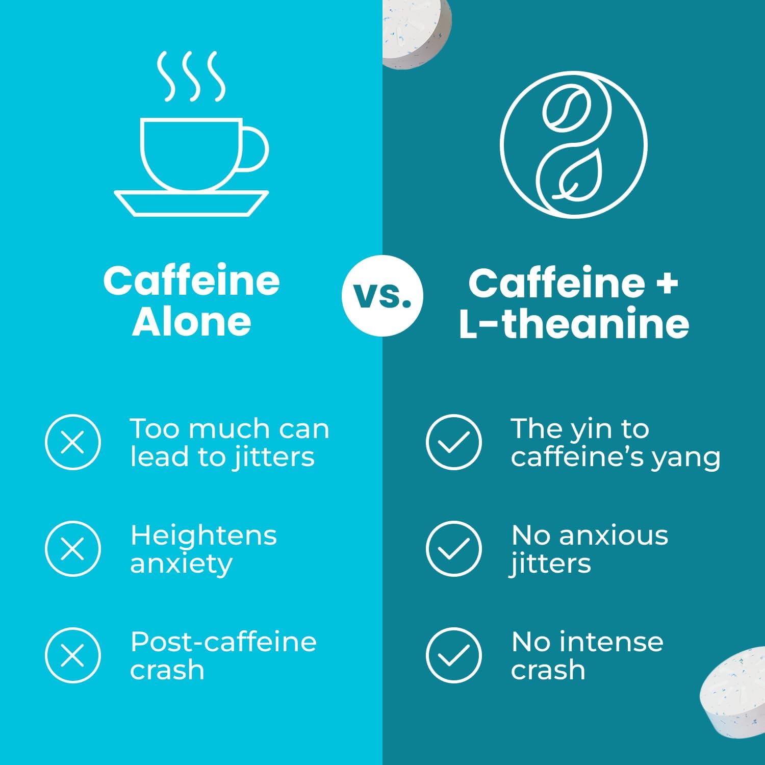 Each piece contains 40 mg of natural caffeine, paired with 60 mg of L-theanine for a smooth, balanced boost.